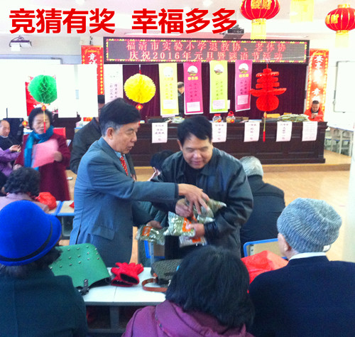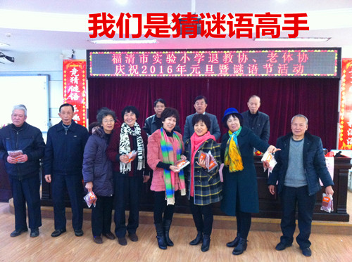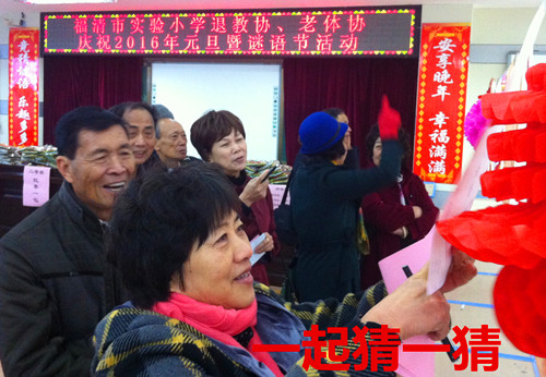 2016年1月1日上午9:00,在实验小学三楼多媒体教室里,实小退教协、老体协正在举办“庆祝2016年元旦暨谜语节活动”。