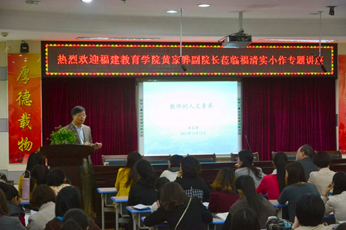 4月1日下午,福清市实验小学特邀福建教育学院副院长黄家骅教授在该校多媒体教室作《教师的人文素养》专题讲座。讲座由福清市实验小学林海燕校长主持,福清市实验小学教师近200人聆听了讲座。