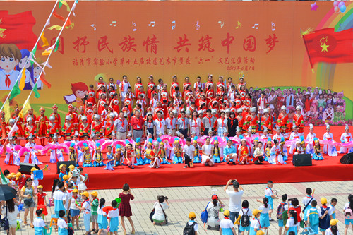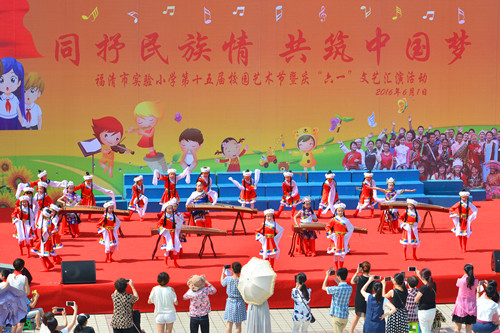 本网讯:6月1日上午,福清市实验小学校园内童趣盎然,快乐洋溢,2016年福清市实验小学第15届校园艺术节暨唱响“同抒民族情,共筑中国梦”庆“六一”少儿文艺汇演在这里上演。“六一”是孩子们的节日,整场汇演也是来自全校各年级孩子们的舞台,孩子们在台上精湛的表现不时博得台下观众阵阵掌声。